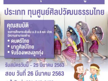 เปิดรับสมัครทุนช้างเผือกมัธยมสู่อาชีวะ ประเภท ทุนศูนย์ศิลปวัฒนธรรมไทย